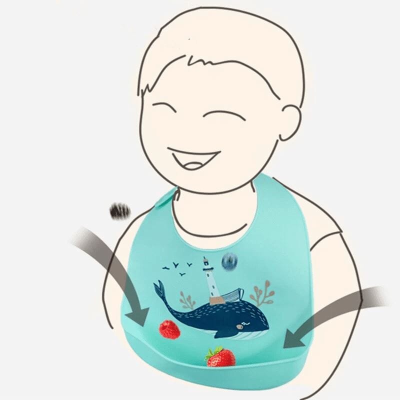 🍽️ Babador com Estampa: O babador com estampa não apenas protege as roupas do bebê de manchas e comidas, mas também adiciona um toque de estilo e diversão à hora da refeição. O babador é ajustável e possui uma bolsa coletora para evitar bagunça no chão e no colo do bebê na hora do papa.